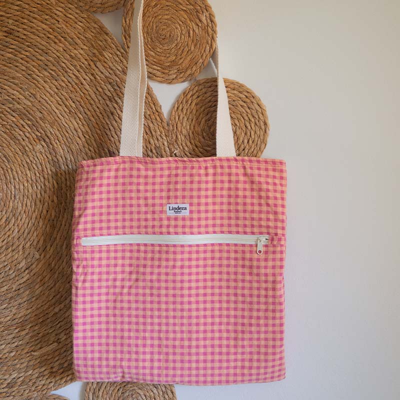 Bolso Tote Vichy Melocotón